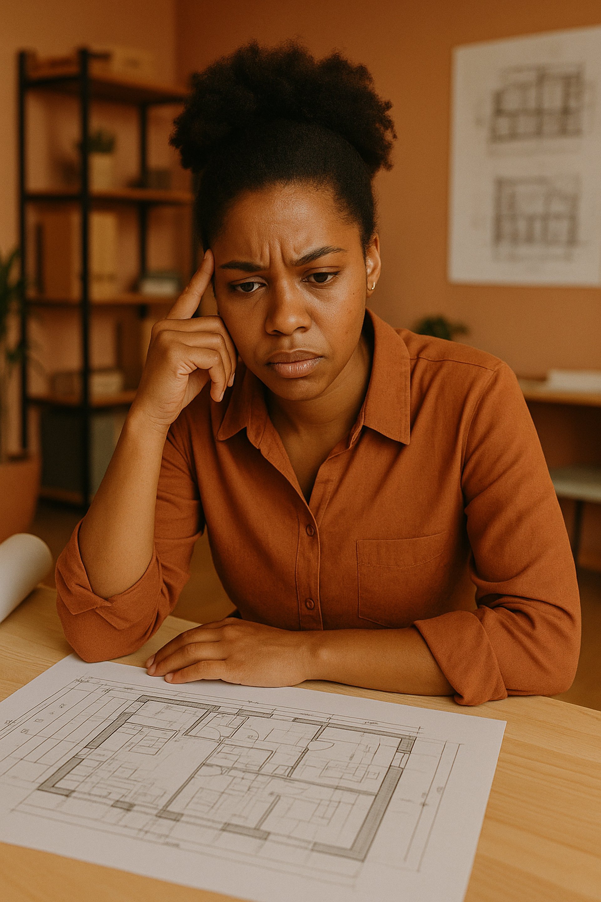 Falta de clareza sobre o processo, não entende a ordem das etapas: Projeto, Orçamentos, Fundação e Acabamento